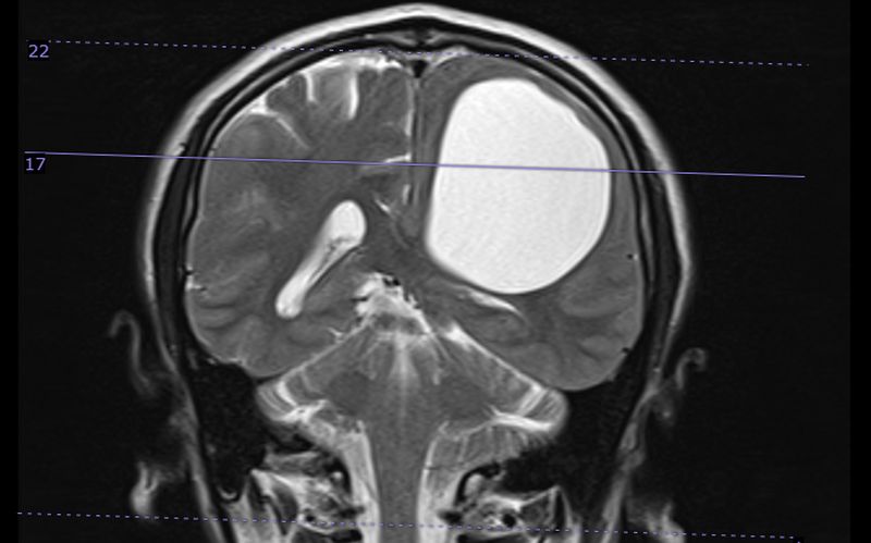Sau khi tiến hành thăm khám, chụp chiếu, kết hợp với các biểu hiện lâm sàng, người bệnh được hội chẩn và chẩn đoán đa u nang trong não, chưa loại trừ nang sán não. Trong nhu mô não có rất nhiều nang to, nhỏ. Trong đó, nang kén lớn nhất kích thước khoảng 5 x 7cm, đè ép nhu mô não khiến người bệnh yếu, liệt nửa người.