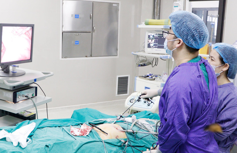 Tại bệnh viện, sau khi hội chẩn, bệnh nhi được chỉ định mổ cấp cứu bằng phương pháp nội soi. Ê-kíp phẫu thuật đã tiến hành đặt 3 Trocar vào ổ bụng, vùng hố chậu phải có khối bọc lại, phân tích khối nhiều dịch mủ, hút dịch mủ, tiến hành phẫu tích giải phóng ruột thừa ra khỏi khối áp xe, tiến hành khâu, đặt ống dẫn lưu và băng vết mổ.