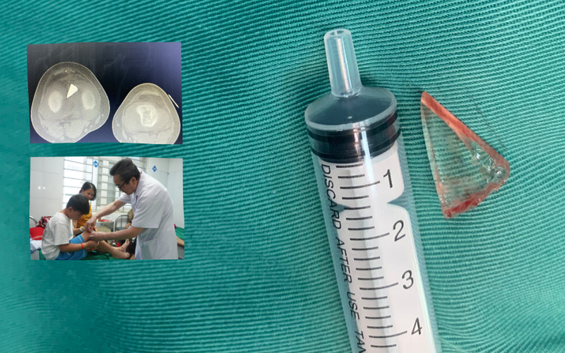 Với tiền sử bị ngã vào tấm kính vỡ gây chấn thương trước đó, bệnh nhi được các bác sĩ chẩn đoán còn dị vật sau chấn thương gối phải và được chỉ định làm tiểu phẫu lấy bỏ dị vật.