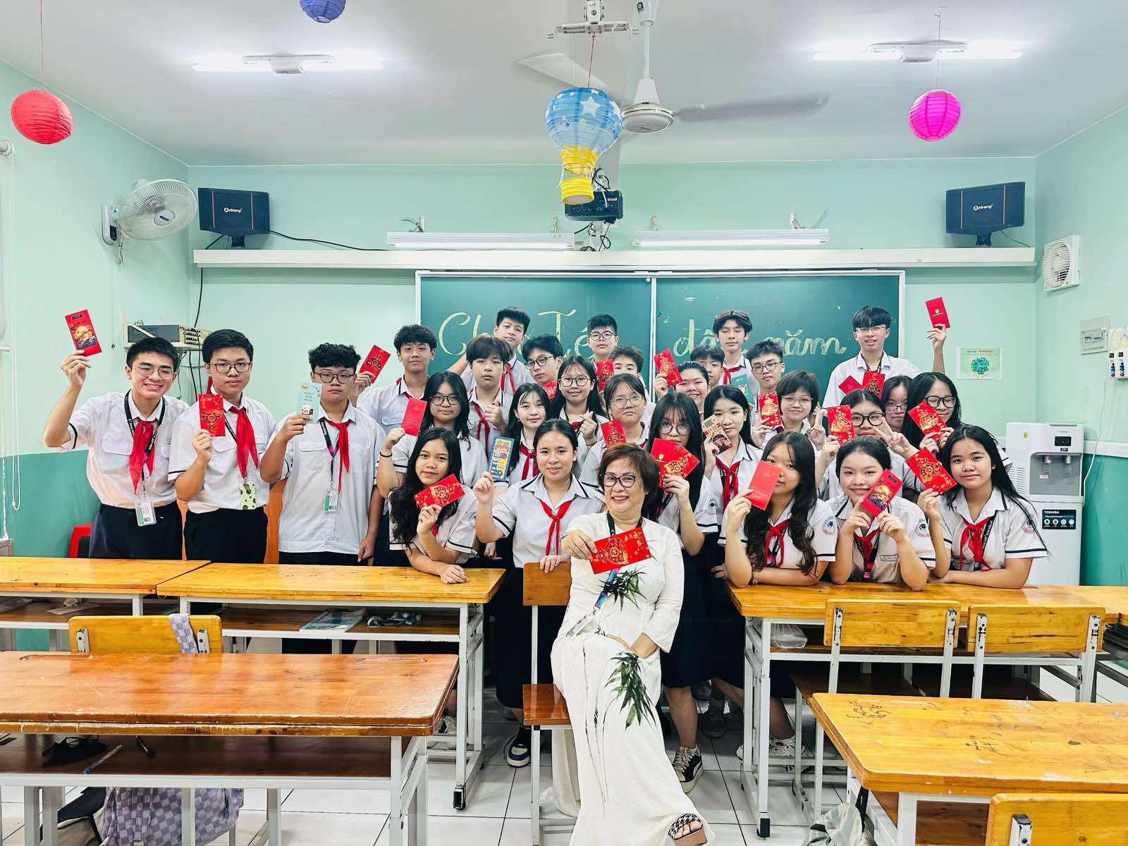 Trong tiết sinh hoạt này, học sinh gửi nhau những lời chúc tốt đẹp và nhận về những bao lì xì nhiều may mắn, chúc tất cả “thi đâu đậu đó”.