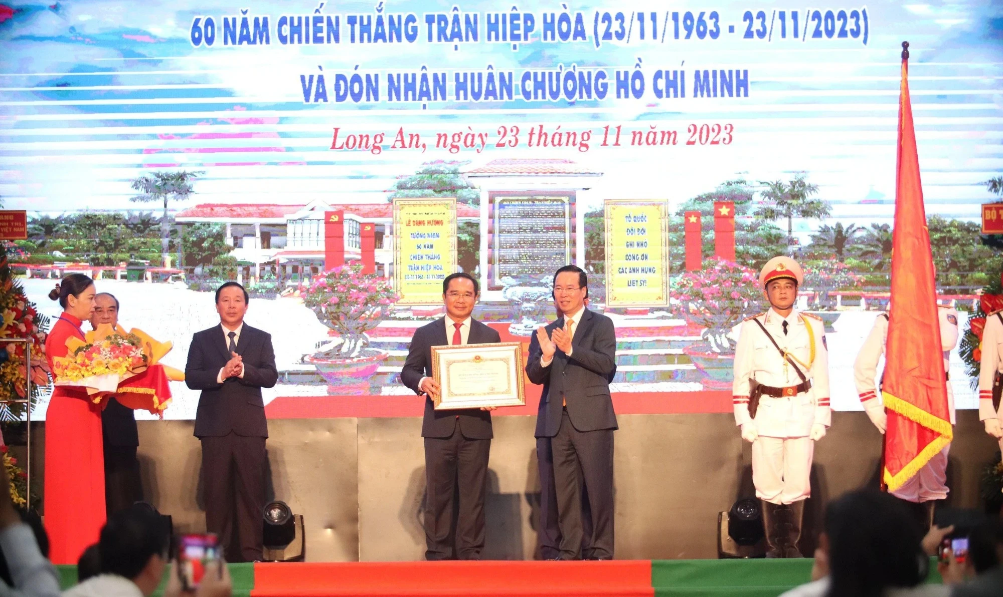 Ngày 23.11, tại H.Đức Hòa (Long An), Chủ tịch nước Võ Văn Thưởng đến dự lễ kỷ niệm 60 chiến thắng Hiệp Hòa (23.11.1963 – 23.11.2023) và trao Huân chương Hồ Chí Minh của Chủ tịch nước cho Đảng bộ, chính quyền và nhân dân tỉnh Long An.