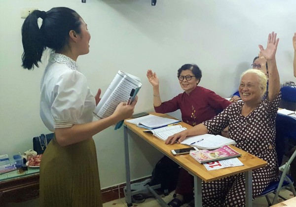 Hơn 4 năm nay, trừ thời điểm giãn cách xã hội vì dịch bệnh, lớp học tiếng Anh đặc biệt với các học viên là các cụ ông, cụ bà từ hơn 60 đến gần 90 tuổi đều đặn diễn ra vào mỗi thứ ba hàng tuần, tại căn hộ tập thể cũ ở Q.Ba Đình (Hà Nội).