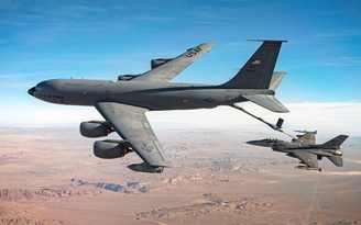 Máy bay KC-135 tiếp nhiên liệu cho một máy bay tiêm kích ẢNH: KHÔNG QUÂN MỸ