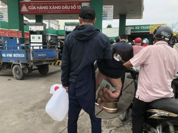 Trưa ngày 10.10, theo ghi nhận của Phóng viên Báo Thanh Niên, tại nhiều trạm bán xăng còn hoạt động, nơi nào cũng rất đông khách xếp hàng chờ đến lượt. Nhiều học sinh sau khi tan học cũng phải phơi nắng đợi ba mẹ mua xăng xong mới được về. Trong khi đó, nhiều người, nhất là những người lao động, mang theo vật dụng để mua xăng tích trữ vì sợ hết hàng.