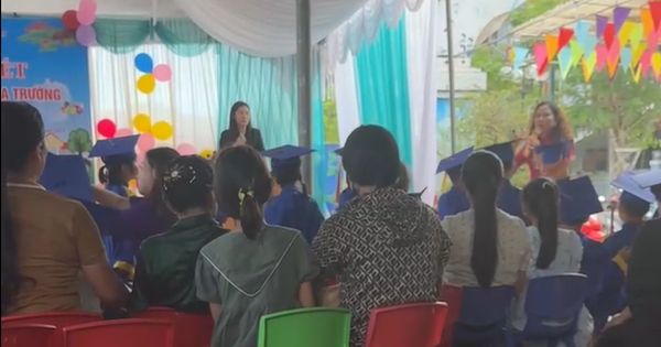 Trước đó, những ngày qua, một clip dài hơn 3 phút đã ghi lại quang cảnh buổi tổng kết của Trường mầm non số 1 thị trấn Quy Đạt.