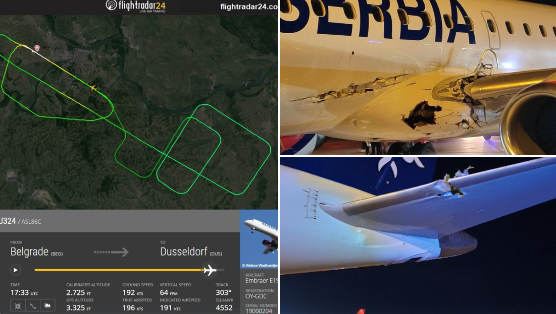 Trong lúc cất cánh khỏi phi trường Belgrade (Serbia) để đến Dusseldorf (Đức) hôm 18.2, chuyến bay JU324 của hãng Air Serbia đã gặp sự cố khiến thân máy bay bị thủng nghiêm trọng.