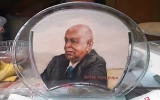 Anh Phan Quang Dũng đưa tôi xem bức chân dung ông Datuk Paul Chua (một tên tuổi lừng danh trong làng bodybuilding thế giới) do một người bạn đặt làm quà tặng. Nhìn từ xa, cứ ngỡ đó là một bức ảnh bởi từ sắc độ đến chiều sâu, bức tranh sống động như thật. Lại gần mới thấy các chi tiết được tạo nên từ hàng triệu hạt cát li ti, chuyển màu tinh tế đến mức khó tin. Ấn tượng đầu tiên là độ chính xác trong việc tái hiện sắc độ da, ánh mắt và nếp nhăn – những chi tiết vốn rất khó với chất liệu cát rời. Ở thể loại chân dung, chỉ cần lệch một gam màu hay sai tỷ lệ nhỏ cũng đủ khiến khuôn mặt mất cân đối. Nhưng ở đây, từng mảng sáng – tối được anh Dũng xử lý mượt mà.