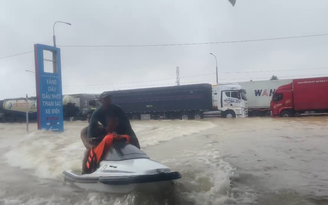 Đội mô tô nước của anh Nguyễn Văn Hà ở TP.Phan Thiết cũ đã đến vùng lũ Hòa Xuân (Phú Yên cũ) đêm 19.11 để hỗ trợ địa phương đưa người dân vùng lũ đến nơi an toàn
