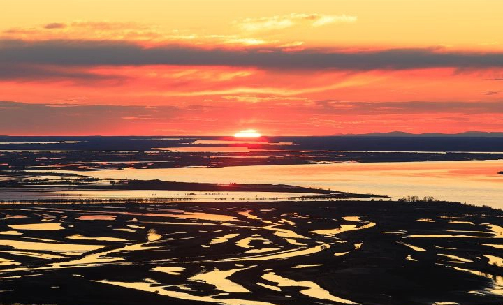 Cảnh bình minh ló dạng bên sông được nhìn ngắm từ núi Y Lực Ca chính là “đặc sản” của trấn Ô Tô. Khoảnh khắc này, cả khung trời và mọi vật nhuốm màu vàng đậm, có thêm sắc đỏ lung linh, khiến du khách ấn tượng khó phai.