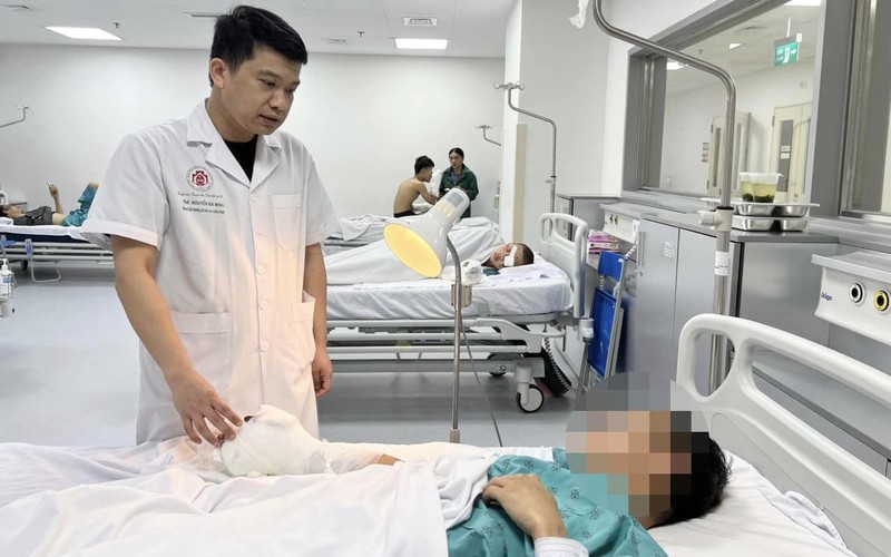 Trong đó, trường hợp một nam bệnh nhân 18 tuổi là có tổn thương nặng nhất, bị cụt nửa ngoài bàn tay trái, rách giác mạc mắt trái. Các bác sĩ đã tiến hành phẫu thuật, xử trí tổn thương cho trường hợp trên.