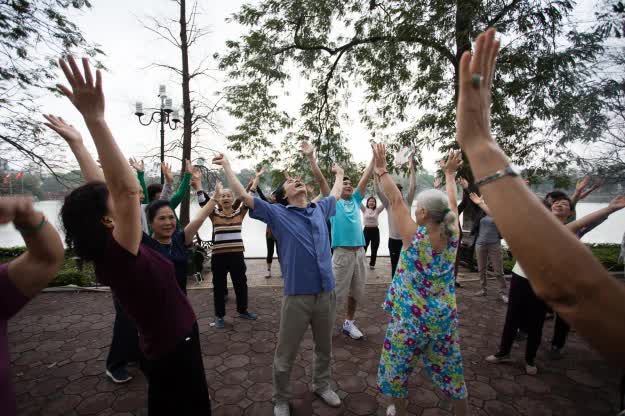 Nếu bạn là người có thói quen dậy sớm, bạn có thể bắt đầu ngày mới bằng cách ghé Hồ Hoàn Kiếm, hay Hồ Gươm, tọa lạc ngay trung tâm thành phố, để ngắm bình minh lên và cùng tập thể dục buổi sáng với người dân địa phương ở mọi lứa tuổi. Các hoạt động buổi sáng cũng rất đa dạng: thái cực quyền, cầu lông, chạy bộ…
