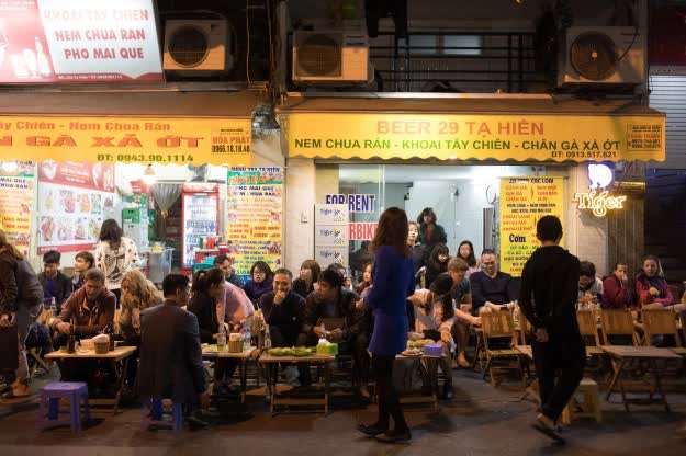 Bạn cảm thấy “khô cổ” sau một hồi đi dạo trên phố và mua sắm tại các cửa hàng đồ thủ công mỹ nghệ ư? Hãy để bia hơi làm dịu cơn khát của bạn. Hãy tham gia cùng hàng trăm người dân địa phương và người nước ngoài trong các quán bia trên phố Tạ Hiện, ngồi trên chiếc ghế nhựa cùng cốc bia hơi trên tay và hô to: “1…2…3…Dô!”