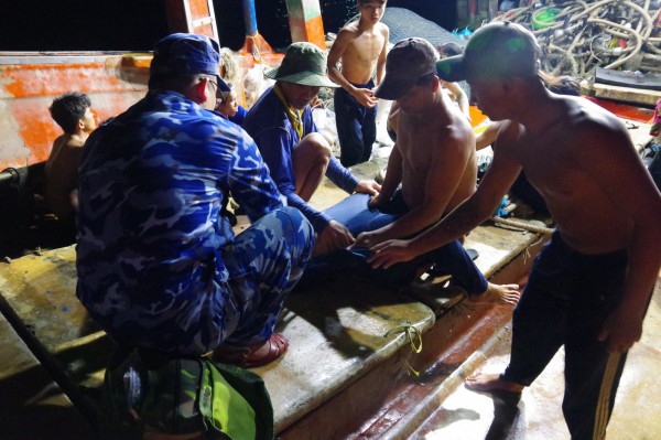 Cán bộ quân y Bộ Tư lệnh Vùng Cảnh sát biển 4 cấp cứu cho ngư dân bị ngạt khí độc