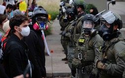 Nhóm người biểu tình đối mặt lực lượng thực thi pháp luật tại TP.Portland ngày 4.10 Ảnh: Reuters