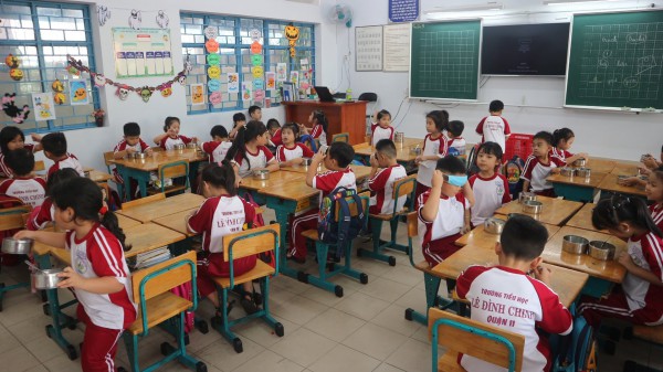 Một trường tiểu học công lập tại TP.HCM cho học sinh vào học tiết đầu tiên lúc 8 giờ sáng, bắt đầu từ năm học 2023-2024.