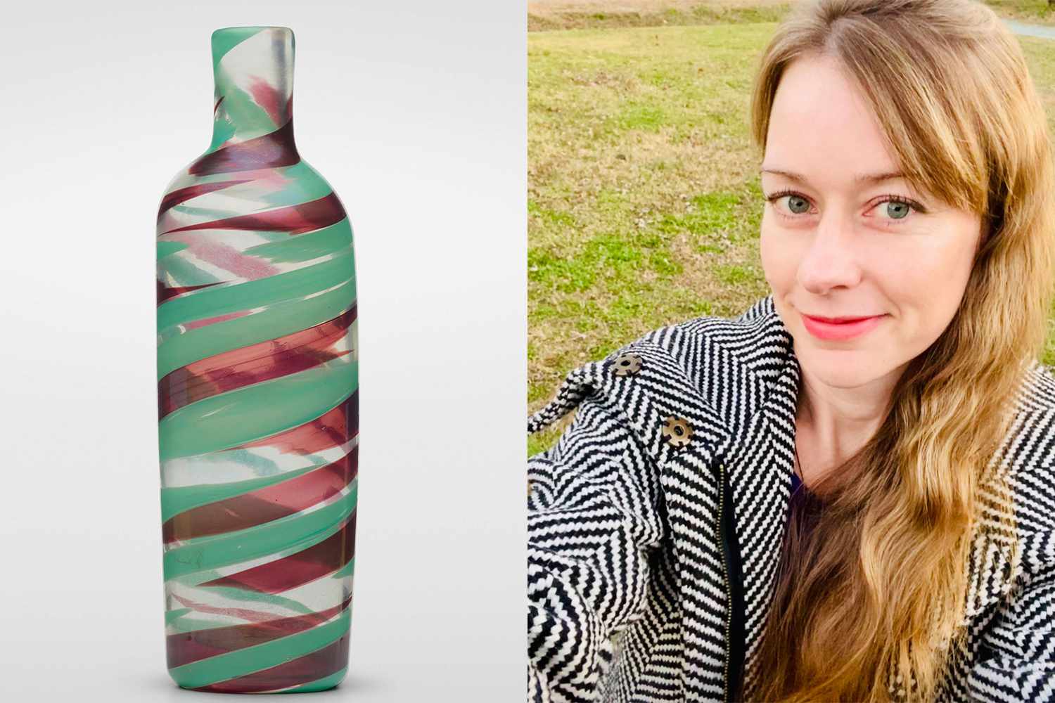 Sau khi về nhà, bà tham gia các nhóm nhận diện thủy tinh trên Facebook để nghiên cứu thêm. Một số thành viên nói rằng cái chai dường như được thiết kế bởi kiến trúc sư Carlo Scarpa nổi tiếng tại Ý và khuyên cô nên liên hệ nhà đấu giá Wright (Mỹ).