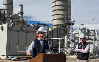 Bộ trưởng Năng lượng Mỹ Chris Wright phát biểu tại một cơ sở dầu khí ở Colorado ẢNH: REUTERS