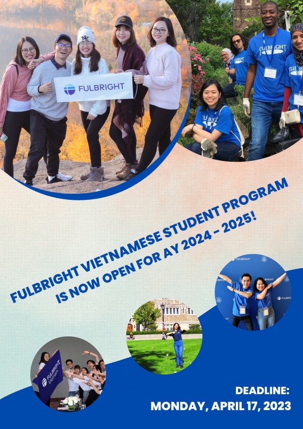 Hạn chót nhận hồ sơ lúc 17 giờ ngày 17.4.2023. Ứng viên có thể tham khảo thông tin chi tiết tại địa chỉ website của Đại sứ quán Mỹ tại Việt Nam: https://vn.usembassy.gov/education-culture/fulbright-program-vietnam/vietnamese-student-program/