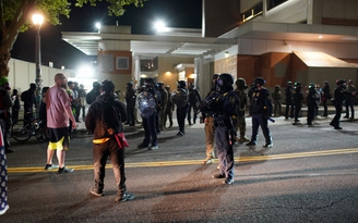 Một số người biểu tình và lực lượng an ninh bên ngoài tòa nhà ICE tại Portland hôm 27.9 ẢNH: AP