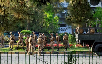 Binh sĩ Pakistan tuần tra gần địa điểm dự kiến diễn ra vòng đàm phán thứ 2 giữa Mỹ – Iran tại Islamabad Ảnh: Reuters