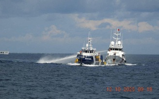 Tàu hải cảnh Trung Quốc số hiệu 21559 sử dụng vòi rồng đối với tàu BRP Datu Pagbuaya của Cục Ngư nghiệp và Tài nguyên nước Philippines hôm 12.10 Ảnh: Cảnh sát biển Philippines/reuters
