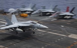 Tiêm kích F/A-18E Super Hornet hạ cánh xuống tàu sân bay USS Nimitz tại Biển Đông hồi tháng 6 ẢNH: HẢI QUÂN MỸ