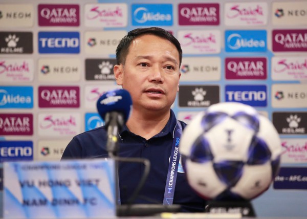 Chiều 1.10, HLV Vũ Hồng Việt và trung vệ Lucas Alves của CLB Nam Định tham dự buổi họp báo trước trận gặp đội Eastern (Hồng Kông) ở vòng bảng Cúp C2 châu Á 2025-2026.