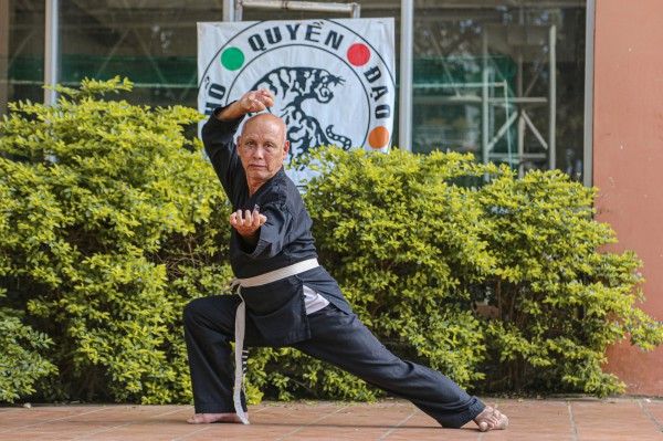Võ sư Đoàn Phú dù ngoài 70 tuổi, thân thể vẫn cường tráng, mạnh khỏe