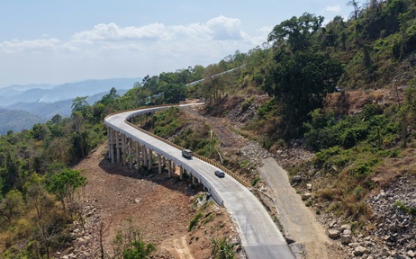 Cầu cạn trên đèo Đại Ninh, quốc lộ 28B giúp xe cộ qua lại dễ dàng và bớt nguy hiểm