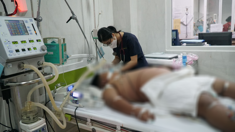 Sau khoảng 8 tiếng điều trị chống sốc, bệnh nhi bị suy hô hấp phải hỗ trợ hô hấp bằng máy thở. Đến sáng ngày 9/11, bệnh nhi hôn mê sâu, tình trạng nặng nề.