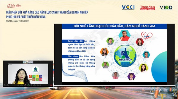 Phó Tổng Giám đốc Trần Uyên Phương chia sẻ tại Diễn đàn “Giải pháp đột phá nâng cao năng lực cạnh tranh của doanh nghiệp phục hồi và phát triển bền vững” do Tạp chí Diễn đàn Doanh nghiệp phối hợp với Viện Thành viên Hội đồng Quản trị Việt Nam (VIOD) tổ chức.