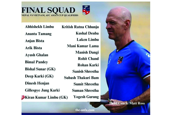 Đội tuyển Nepal đã chốt xong danh sách chính thức cho 2 trận gặp Việt Nam (ngày 9 và 14.10) tại vòng loại Asian Cup 2027, diễn ra tại TP.HCM.