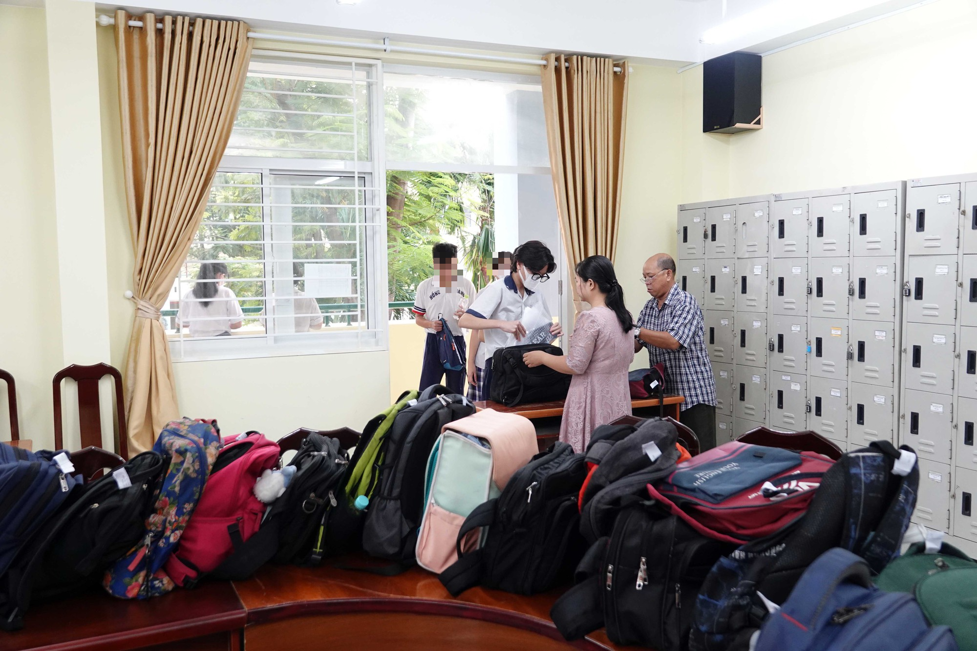 Thí sinh gửi vật dụng trước khi vào phòng thi tuyển sinh lớp 10