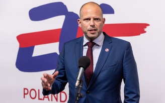 Bộ trưởng Quốc phòng Bỉ Theo Francken phát biểu tại cuộc họp không chính thức của các Bộ trưởng Quốc phòng EU tại Warsaw (Ba Lan) vào ngày 3.4 Ảnh: AFP
