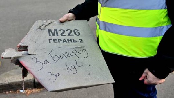 Một sĩ quan cảnh sát ở Kiev giữ một mảnh vỡ của UAV với dòng chữ viết tay bằng tiếng Nga. Ảnh: AFPTrước đó, các quốc gia phương Tây cáo buộc Iran cung cấp máy bay không người lái cho Nga để sử dụng ở Ukraine.