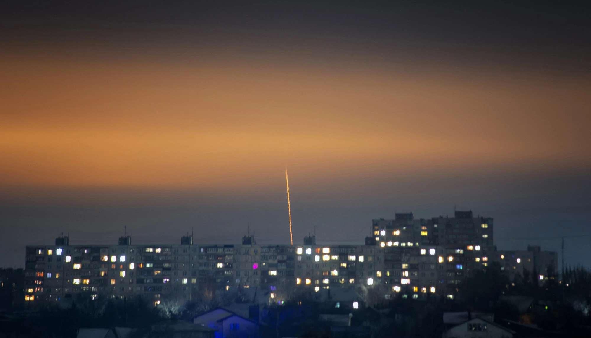 Một tên lửa được phóng từ Nga bay về phía thành phố Kharkiv thuộc miền đông Ukraine trong cuộc xung đột Nga-Ukraine