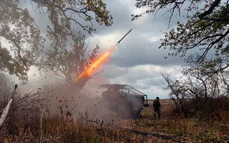 Lực lượng Nga tại Ukraine phóng rốc két 122 mm Grad về phía lực lượng Ukraine trong ảnh được công bố hôm 31.10 ẢNH: AP