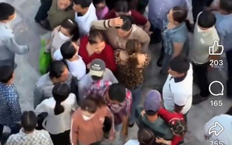 Nữ du khách bị giật dây chuyền (áo đỏ) không thể thoát ra ngoài vì đám đông áp sát, vây quanh