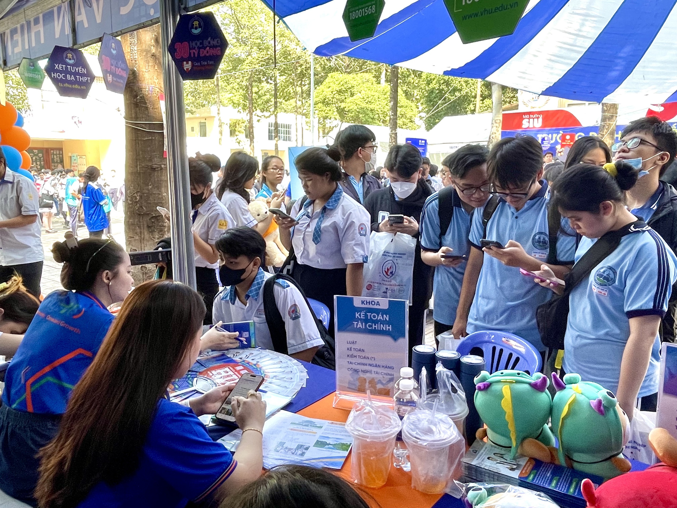 Học sinh tìm hiểu về ngành nghề, chương trình học tại ngày hội Tư vấn mùa thi 2024 do Báo Thanh Niên tổ chức