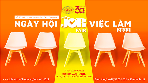 Ngày hội việc làm – HUFLIT JOB FAIR 2022 khẳng định được thương hiệu, uy tín khi thu hút đông đảo sự quan tâm và đăng ký của nhóm đối tượng: Sinh viên đại học chính quy, cựu sinh viên HUFLIT. Ngày hội việc làm diễn ra từ 08:00 – 15:00, ngày 21/5/2022 (Thứ Bảy) tại Trường Đại học Ngoại ngữ – Tin học Tp.Hồ Chí Minh (828 Sư Vạn Hạnh, phường 13, quận 10, Tp.Hồ Chí Minh).