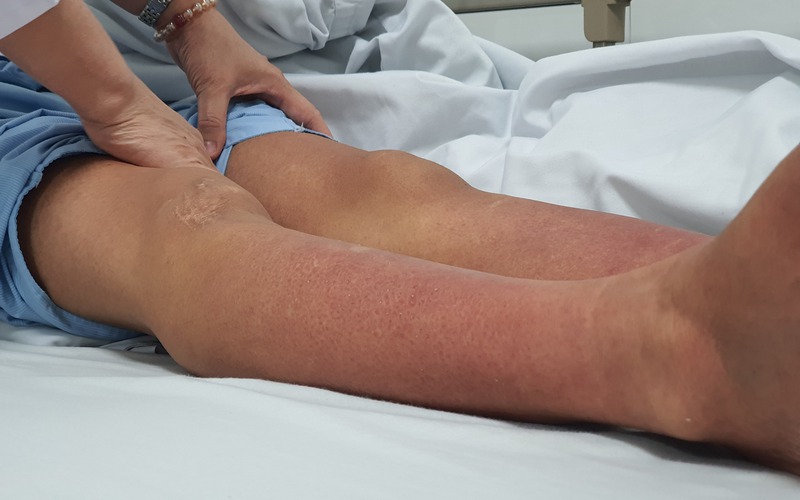 Bệnh nhân sốt cao 39 độ C, chán ăn, đau nhức toàn thân, dùng thuốc hạ sốt giảm ít, xuất hiện các nốt xuất huyết ở cẳng chân. Bệnh nhân đã được chẩn đoán sốt xuất huyết khi đi test tại phòng khám tư trước khi nhập viện tại Bệnh viện Nội tiết Trung ương.