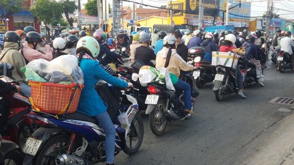 Nhìn chung xe máy chiếm số đông. Tại một số thời điểm lượng xe dồn về quá đông, nối đuôi nhau xếp hàng dài.