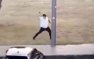 Người đàn ông ném gạch về phía tay súng được xác định là ông Reuven Morrison, một trong số 15 nạn nhân của vụ tấn công tại Sydney ngày 14.12 ẢNH: CẮT TỪ CLIP