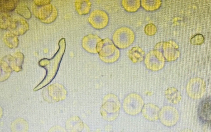 Trước khi khởi phát bệnh, bệnh nhân đã ăn các thực phẩm tái hoặc sống nhiều lần như thịt cừu nướng chưa chín, tiết canh dê, rau sống và gỏi cá mai. Bệnh nhân phát hiện bệnh với tình trạng mệt mỏi, đau vùng ngực phải âm ỉ, thỉnh thoảng khó thở, không sốt, không ho, không mẩn ngứa, không sút cân.