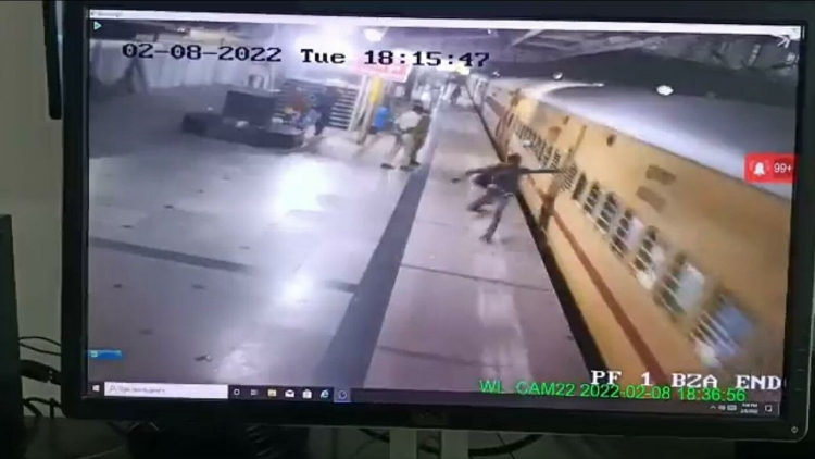Đoạn video dài 32 giây được đăng trên Twitter của Bộ Đường sắt Ấn Độ cho thấy 2 nhân viên bảo vệ đường sắt đang tuần tra nhà ga trong lúc đoàn tàu bắt đầu lăn bánh. Một hành khách bất ngờ nhảy khỏi tàu, nhưng bị trượt chân và ngã xuống sàn. Hai nhân viên bảo vệ nhanh chóng chạy tới và kéo hàng khách khỏi đoàn tàu.