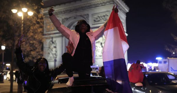 Những người hâm mộ bóng đá đã kéo đến đại lộ Champs-Elysees ở Paris, đốt pháo sáng đỏ và tận hưởng bữa tiệc chiến thắng trong loạt tiếng còi ô tô không ngớt. Trên đại lộ nổi tiếng, nhiều người dân đã vẫy cờ Pháp và hát “chúng ta vào chung kết”.