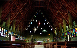 Không gian ấm cúng và lung linh sắc màu bên trong nhà thờ Cam Ly ẢNH: MẠNH THI
