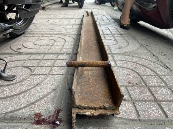Thanh thép dài khoảng gần 2 m, rơi trúng người đi đường