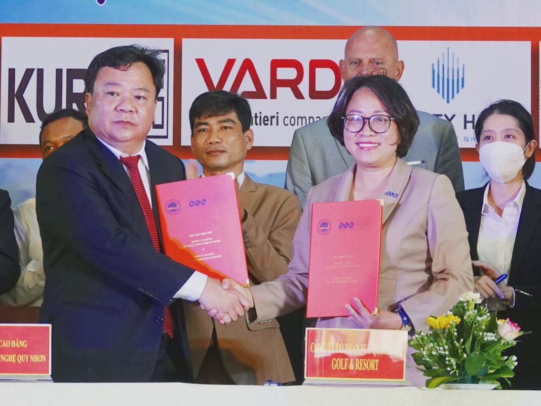 Ngày 25.3, Trường CĐ Kỹ thuật công nghệ Quy Nhơn (Bình Định) đã tổ chức lễ ký kết hợp tác với 5 doanh nghiệp, gồm: Công ty TNHH Vard Vũng Tàu, Công ty CP thương mại và hợp tác nhân lực TQC quốc tế, Công ty CP dịch vụ xuất khẩu lao động và chuyên gia SULECO, Công ty TNHH Kiểu Việt, Công ty CP FLC Quy Nhơn Golf & Resort.