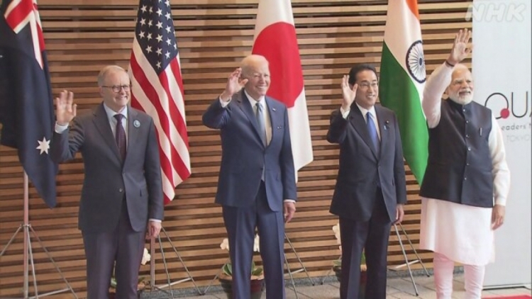 Tổng thống Mỹ Joe Biden cùng lãnh đạo các nước khác thuộc nhóm Bộ Tứ bao gồm Nhật Bản, Ấn Độ và Australia ngày 24/5 đã nhóm họp tại thủ đô Tokyo của Nhật Bản. Các bên đã ra tuyên bố khẳng định cam kết đối với một khu vực Ấn Độ Dương-Thái Bình Dương tự do, rộng mở, bao trùm và có khả năng phục hồi.